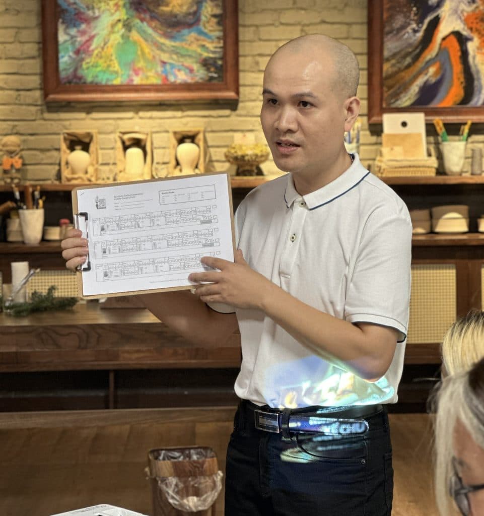 Tại workshop, chuyên gia Phạm Hồng Thiệu – người có hơn 10 năm kinh nghiệm trong lĩnh vực kiểm định chất lượng cà phê, đã có những chia sẻ thú vị xoay quanh các nội dung về nguồn gốc, các phương pháp chế biến và giá trị của hạt cà phê Arabica Sơn La.