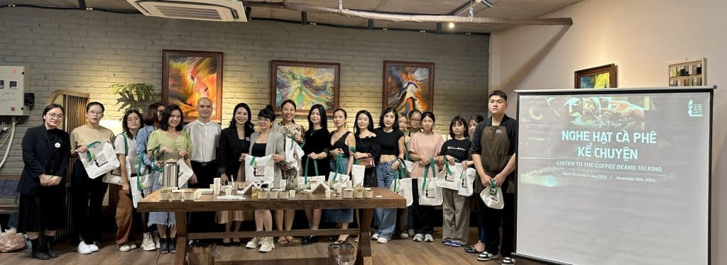 Vào ngày 28/11, IWCA Việt Nam tổ chức workshop “Nghe hạt cà phê kể chuyện”. Đây là một hoạt động thuộc khuôn khổ dự án “Trao quyền và phát triển kỹ năng cho nữ nông dân trồng cà phê và nữ nhân viên làm việc tại quán cà phê về an toàn lao động trong môi trường làm việc” do Starbucks Foundation tài trợ vào năm 2023. Buổi workshop đã diễn thành công với sự tham gia của 18 khách mời.